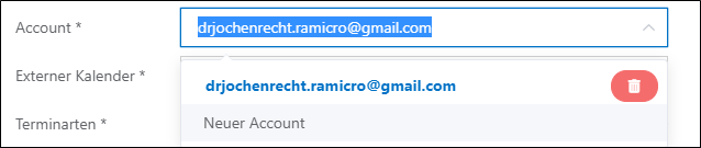 Anschließend ist die Eingabe des externen Kontos (beispielsweise Google-Konto) unter Account erforderlich.