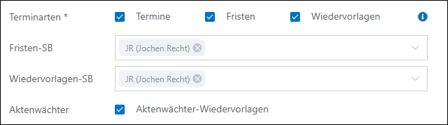 Wird kein Wiedervorlagen-Sachbearbeiter ausgewählt, werden alle Wiedervorlagen synchronisiert. Zusätzlich ist auch die Synchronisation der Aktenwächter-Wiedervorlagen möglich.